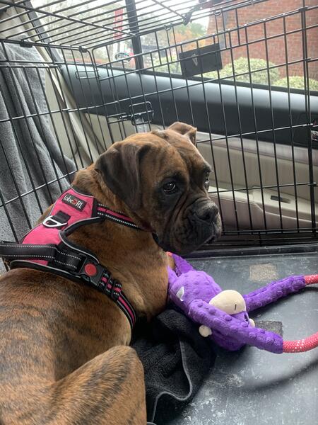 message boxerpuppies123 about this ad 6 year old adult brindle boxer. We got her when she was an adult. She is very sweet, loving and protective. She doesnt like mailman or FedEx drivers though so we are having issues with her being loose on our property. Free to loving home. She is good with children and gets along with most animals |