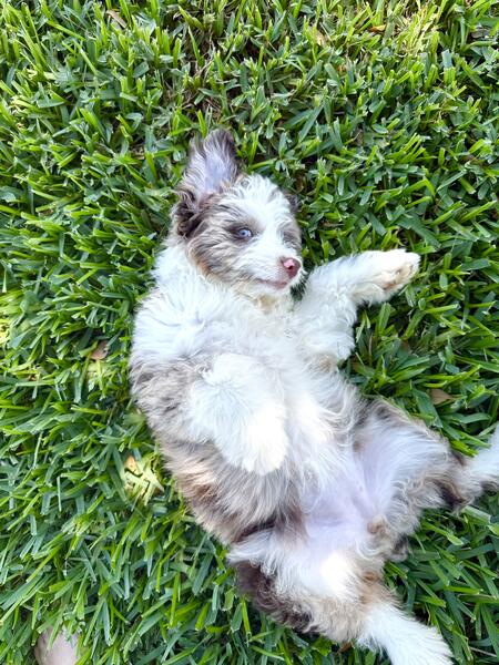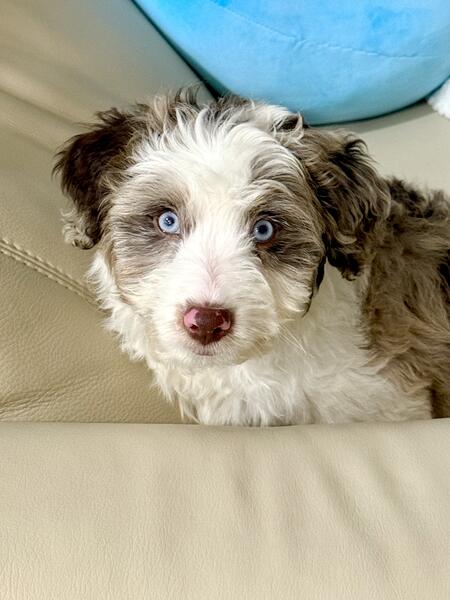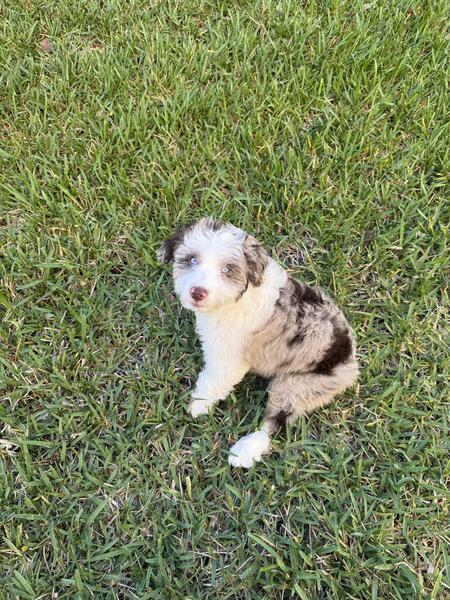 message brkbbgmfg about this ad Mini Aussiedoodle- 4 months old. Female. Tri color. Needing to rehome as our other dog is not getting along with her . Has completed shots with records, microchipped too. 941-979-72 9 nine |
