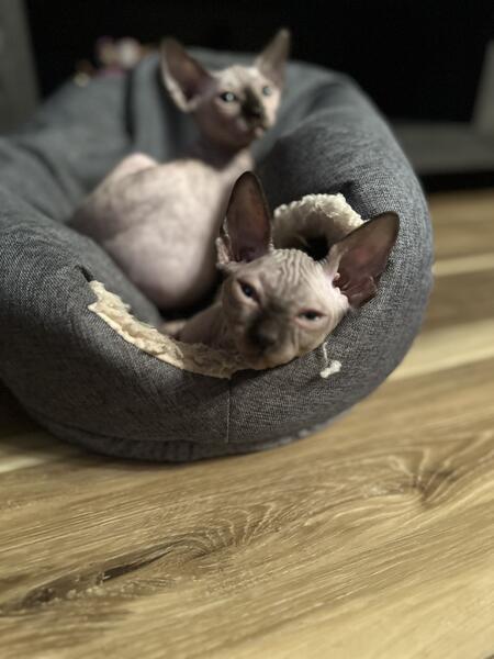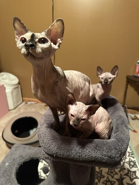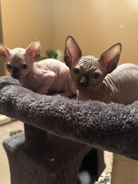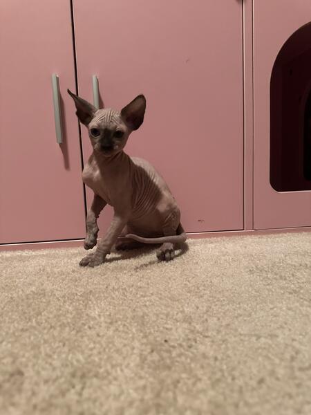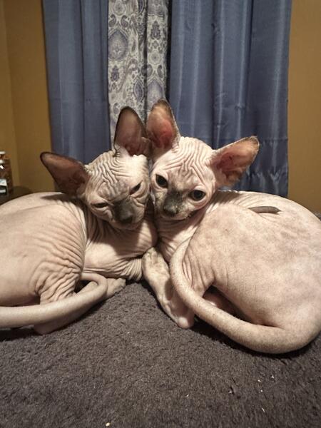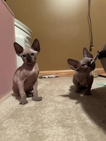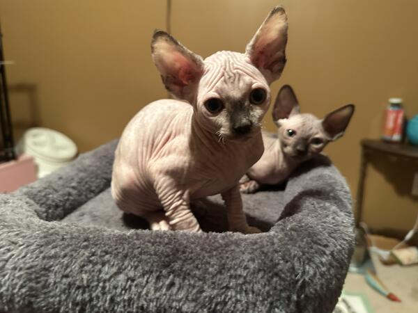 message wallie21 about this ad I have several pure bred sphynx kittens available for adoption. All kittens are up to date on vaccines (FVRCP, Rabies litter box trained, and WELL SOCIALIZED. All kittens grow up in a home with several other cats and dogs (large and small breed dogs) and are handled frequently! Kittens are HCM negative (recommend repeat testing around 2 years of age, but both parents have negative status Can arrange to spay/neuter prior to pickup if desired. Questions or interested in adding a new furless baby to your life? Please text 4(one)9-six02-one77five |