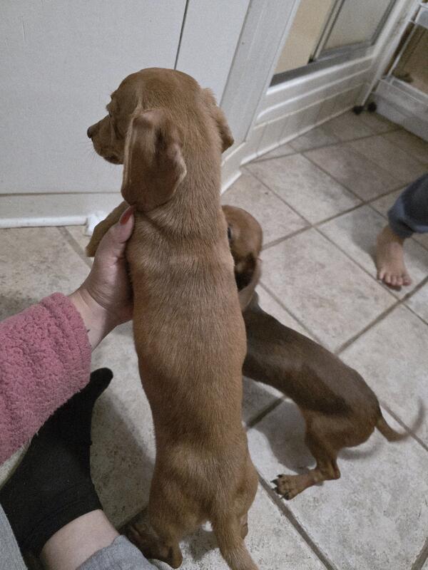 message jazzyshod about this ad Puppies available in Hope Mills, North Carolina. NOT registered. Puppies will be health cleared by a licensed vet. Given puppy boosters and rabies and dewormed regularly. Born : July 24, 2025 Ready : now Dam : Chocolate and tan LH Sire : Blue based red dapple SH Female #2 : (not available) Male#1 : Shaded red SH (not available) Male # 2 : Chocolate based red dapple SH |