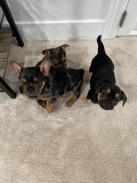 message chlovixen about this ad Ready for Loving Homes! Born June 4th, these sweet Frenchie-Yorkie mix pups are full of personality and charm! Theyre active, playful, and already working on pad training. Super socializedtheyve been raised around other dogs and even a cat (who they love trying to play with Each pup has been handled daily and is used to a lively home environment, making them perfect for families or individuals looking for a fun, affectionate companion. Serious inquiries only. Message for more info or to meet your new best friend! |
