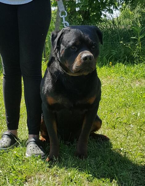 message wildstreak about this ad Im going to offer my AKC Rottweiler up for $tud for a limited time. Hes getting up there in age so this will probably be your only chance. Ca$h or possible puppy(s) back. Last time he was at the vet he was 143lbs. Pretty much pure German bloodline. He was purchased down south from K-9 Guardians kennel, so other than the one litter Ive had from him and 1 outside breeding, he shouldnt be related to anything around here. |