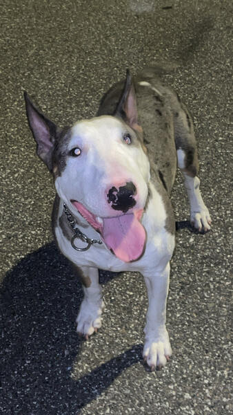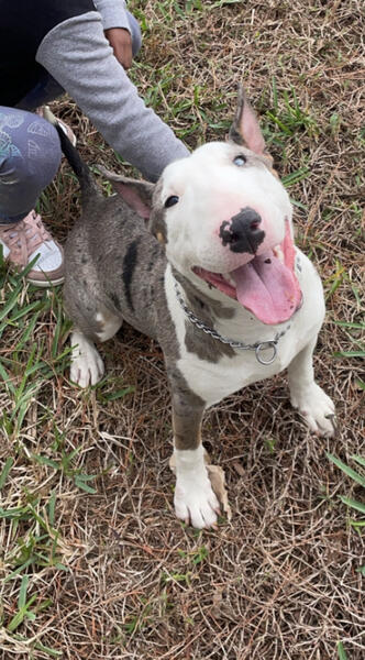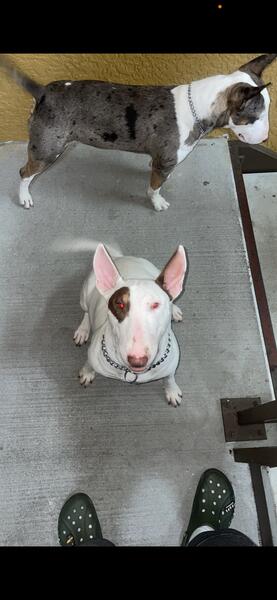 message bullfactory813 about this ad I have 1 Female White and Liver(chocolate) & 1 Merle Male Bull Terrier. Both dogs are house broken and socialized. Great and well behaved pets(trained Male is a proven. |