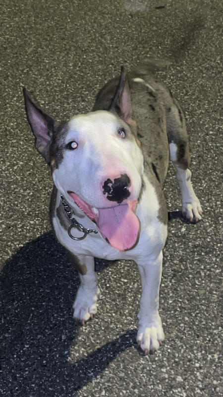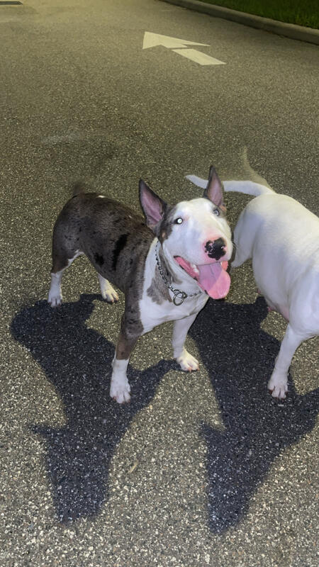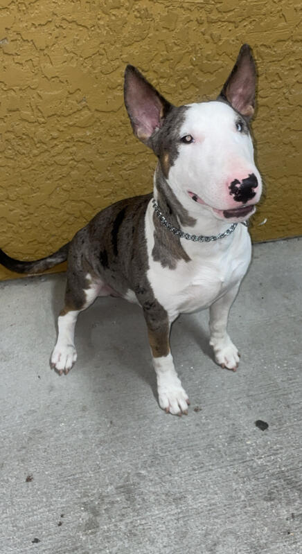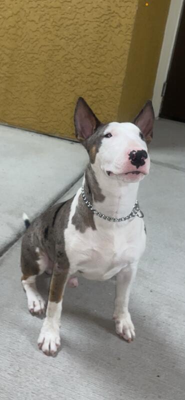 1 Merle Male Bull Terrier. My dog is house broken and socialized. Great and well behaved pet(trained Male is a proven.