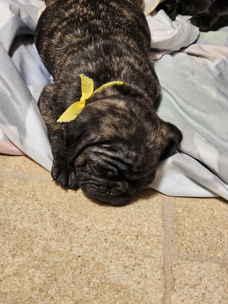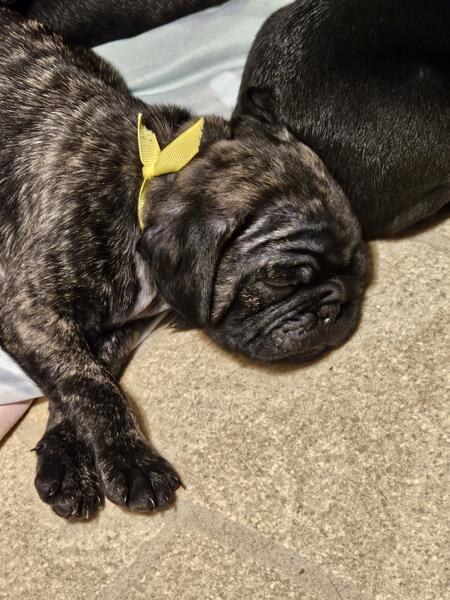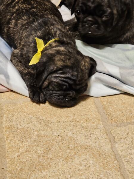 Pug Puppy-Brindle Female-Yellow Ribbon -- 300.00