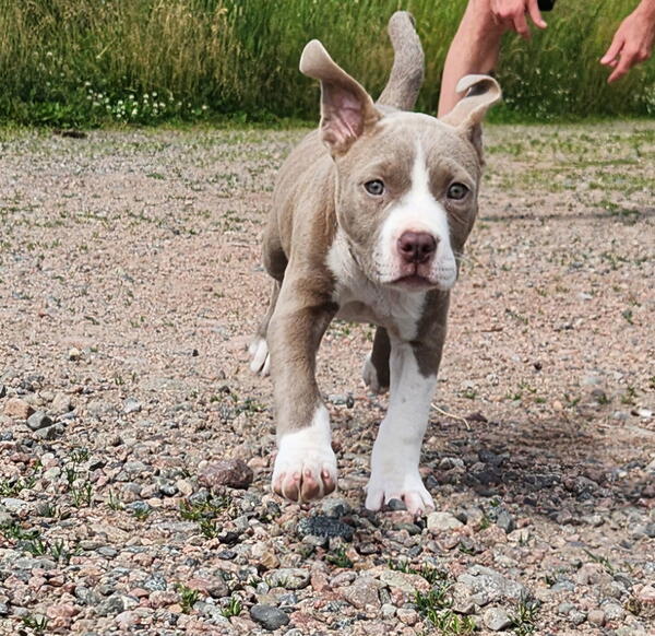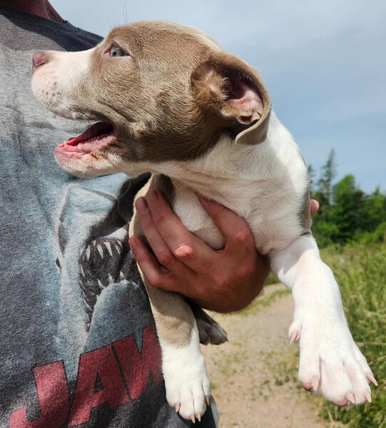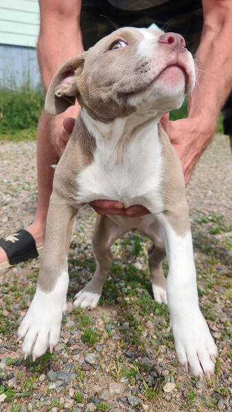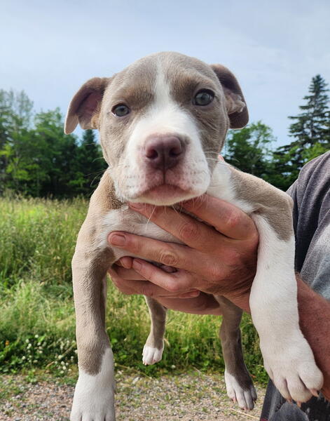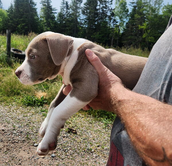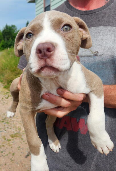 message kbragg902 about this ad 100% razors edge x gotti line x GK. Female 13 weeks and was the only pup in her litter. Im half thinking about keeping her but I have 4 more in the house now already. So far she seems bright and intelligent. Very energetic and curious, with no past history of health issue in other litters. The Sire is 12 years old now and still going strong. These dogs love being outside but arent afraid of bad weather. The mom is here with me as well and I can provide video and photos of all including past litters. My females range from 85-100lbs each with males hitting 115 easilyDNA tested through Embark with the results showing 100% Am.Bully with zero chance of Merle colouring. These dogs are very athletic and would need regular exercise along with basic training starting immediately. Asking $2000 902-919-1259 for details, located outside Sydney in a small farming community called Dalem Lake. |