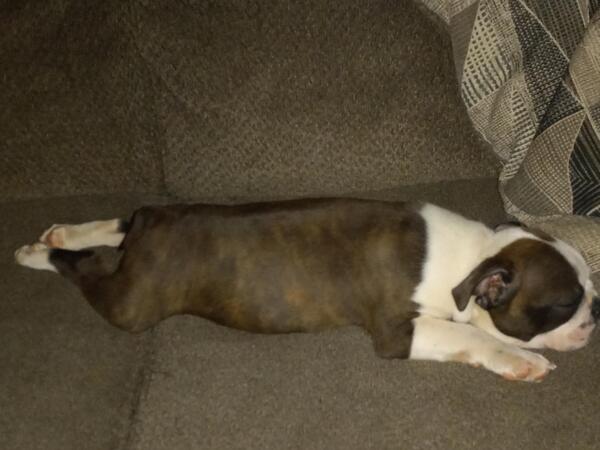 message tonya1118 about this ad Oliver is a 2 year old brindle and white Boston Terrier. He weighs 25 pounds. He is not registered, but is proven. Will provide pictures of puppies upon request. He is for Stud only, not for sale. |