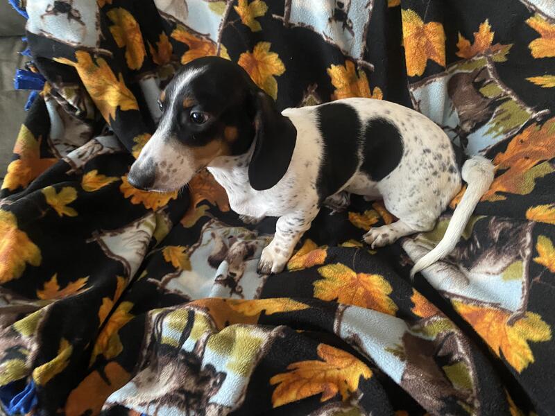 message belovdoxies about this ad What a cutie! Roscoe is a black and tan piebald smoothcoat miniature dachshund. He was born 05/29/2025 and is now ready for his new home. Roscoe has had all four of his puppy shots and several routine dewormings. I love my dachshunds because like me they are mischievous and stubborn. They are also loyal and fun-loving. My puppies are all descendants from AKC bloodlines. I stopped registering them several years ago because nobody wanted the papers. They are not registerable, but they are full blooded. His adoption fee is only $300. Contact me (Melissa) through this site if you think you want to make Roscoe a part of your family and we can arrange for you to see him in person. I am having difficulty loading pics. Hope to have them up soon. |