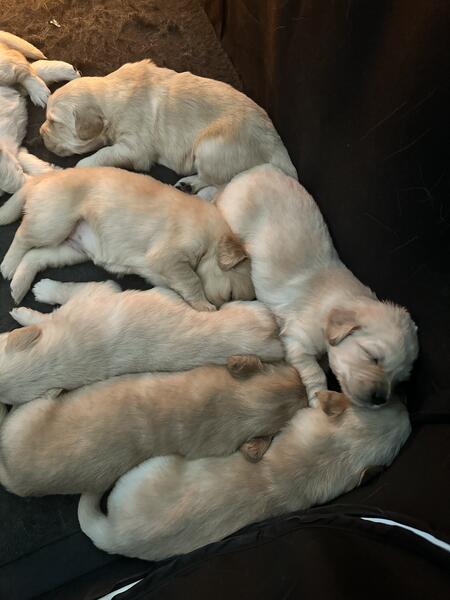 message mhalli8 about this ad Hello! My golden husky and purebred golden got together and had puppies before her scheduled spay. Together they had five boys and three girls. One boy is accounted for. The rest are available for purchase. Will get first parvovirus vaccine before leaving. They will be weaned and ready for pickup by February 22nd. Will take more pictures upon request. Please message for my number for better contact. |