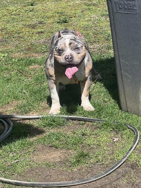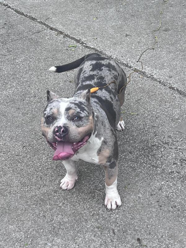 message mercado98 about this ad Merle American bully just hit 1 years old and is ready to work Stud fee 1k or first pick female Picture of parents listed above Sire: black tri champion j3 Dam: white and fawn female Contact: 216-456-5677 - Dre |