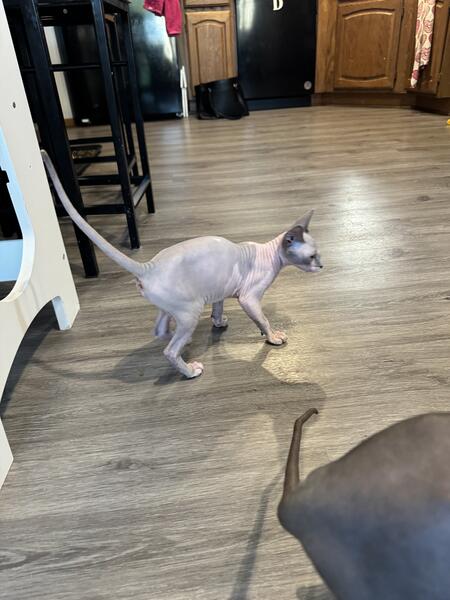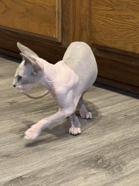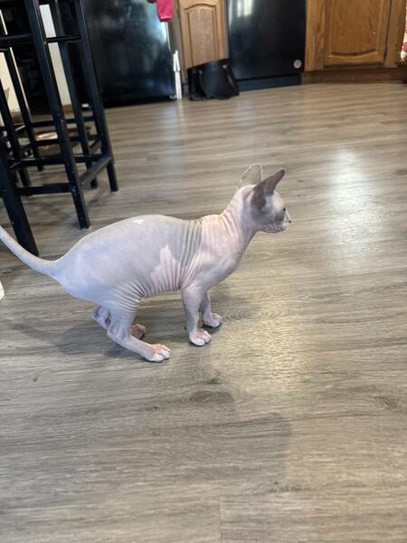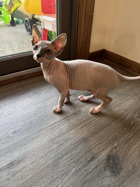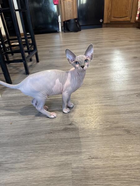 message gatobuddysphynx about this ad 14 week old Female Sphynx looking for her new forever home. She has been vet checked twice & has all of her age appropriate vaccines. She is in great health. Good with kids & other cats. Loves to cuddle & be held. Shes a very good cat. Litter box trained |