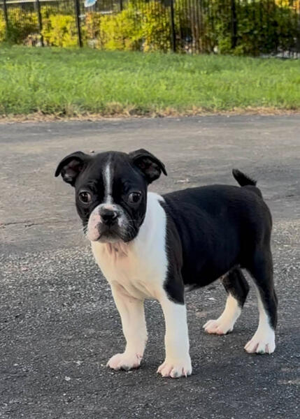 message drmptbl5452 about this ad Gorgeous Boston Terrier puppy, male, AKC Registered, champion bloodlines, excellent markings with a full white collar. He has a great personality and loves to play. I can text you a video if you are interested in him. He is ready to go to his new home now. $850 without papers or $1150 with AKC papers. |