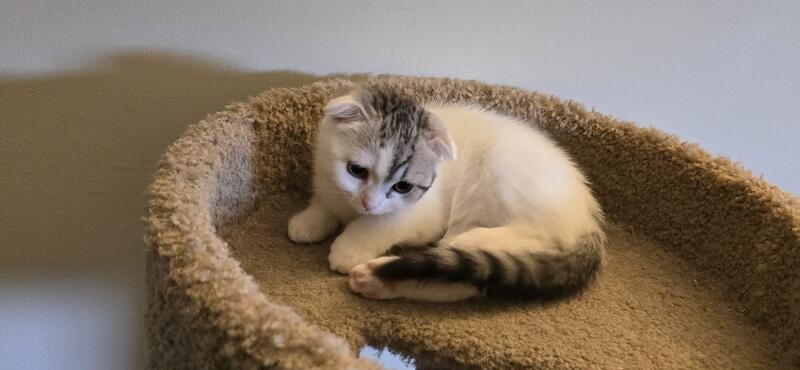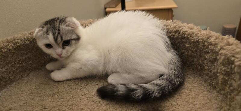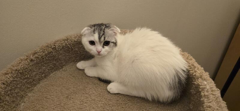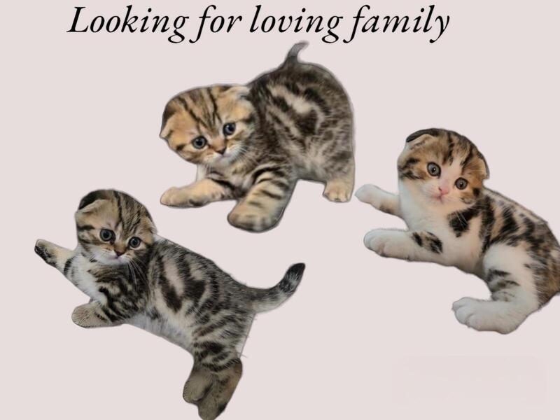 message zvisnadul about this ad Beautiful Scottish fold folded ears girl for sale. The D.O.B. is June 22nd. She is a very playful and affectionate white with stripes kitten with thick fluffy soft short hair. She was born and raised in a loving home environment. She loves to be around people and will often follow you as if she is a puppy. She is almost two months old and ready to go. She is vaccinated, dewormed and litter trained. Both of her parents are WCF registered. See pictures of the parents also. We have also one more girl gray marble orange and brown color from the same litter straight and folded ears kittens. Please check Instagram video. If you are interested, text or call: 267-939-7901 Zak |