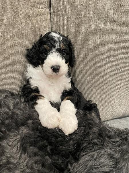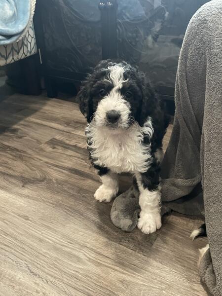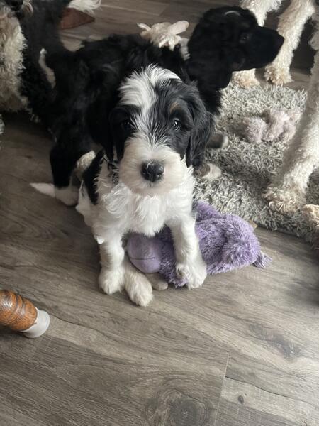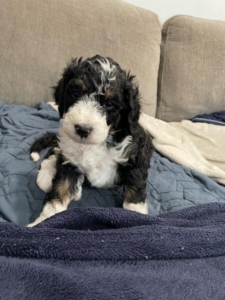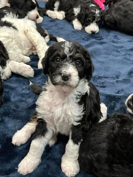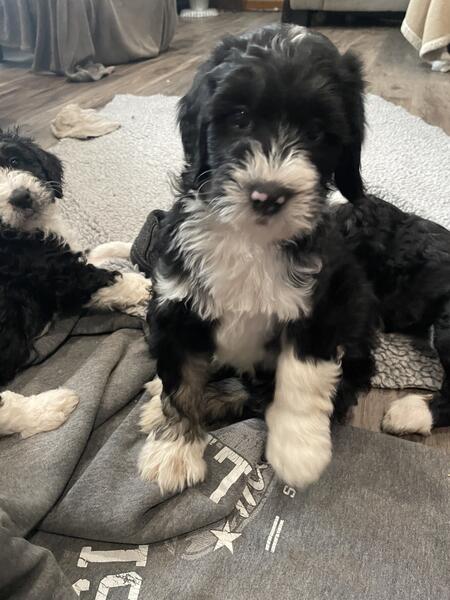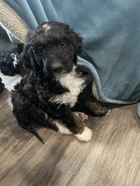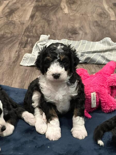message jasperdogs25 about this ad Bernedoodle puppies - multiple available. Full-size. Born 1/18/25 will come with 1st set of vaccinations, vet check and 3 sets of dewormings. They will range between 55-70lbs at full growth. Parents on site. Will require proof of spay/neuter witching 1 year of purchase. Please message for more details |