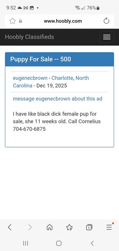 message game4ever about this ad Be careful dealing with this person! Don't send deposit or money unless u can see the dog in person. I paid for a dog still haven't seen it. Don't get burned like I did |