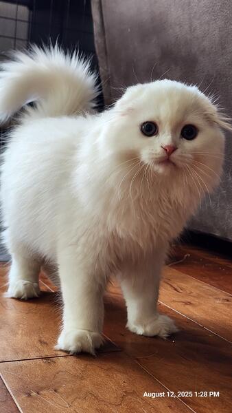 message lnchk5231 about this ad Scottish fold boy ready for adoption. Veterinary health examined, (comes with vet. papers) vaccinated, dewormed, litter box trained, eats solid/canned food, born May 7th, has the sweetest, calm, playful personality, does good around other pets. Text to schedule a visit 719-299-0570 |
