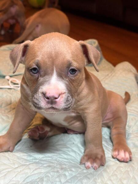 message bighousebullies40 about this ad We are thrilled to announce our new litter of puppies from Iceburgs Oscar the Grouch and Bliss of the Big House. They have a gorgeous, super short and soft velvet coat, shiny fawn and white markings much like Dad. Some have the most gorgeous blue eyes. Out puppies are raised inside of our home and handled every day since birth! They litter will be evaluated at our vet around six weeks old. Each puppy comes with registration paperwork in the ABKC as well as full medical records, and up-to-date vaccinations. We take such pride in our dogs! We truly believe in supporting relationships with new families - not only in the initial process of bringing a new puppy home but anytime in the future! Feel free to check us out on our website www.bighousebully.com |