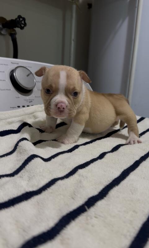message onebloodbullyz1k about this ad 6 weeks old male jackpot son looking for new forever home OBO inbox me lets work follow me on IG @Onebloodbullyz DM over there cause I barely check this message |
