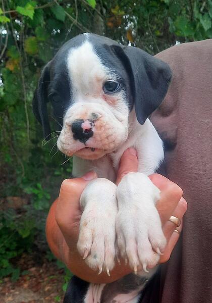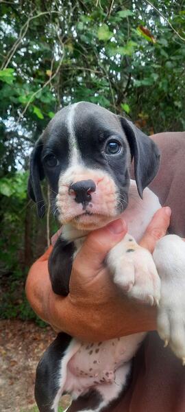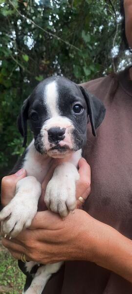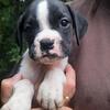 message tonyagoodson about this ad CKC Boxer puppies. DOB 06-13-25. Tails docked and dewclaws removed. Dewormed and first set of vaccinations given. Vet checked. The sealed brindle with the thinnest white stripe down his forehead is the male. |