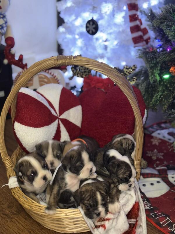 message prcbb3907 about this ad Beautiful tiny English Bulldogs. Mom is 36 lbs and under 40 inches, beautiful brindle. Father is tri and such a beautiful well tempered soul. Puppies will be on the smaller (mini) side of EBs. Both parents are AKC registered and litter is too Puppies are ready for their forever homes January 4th parents on premises |
