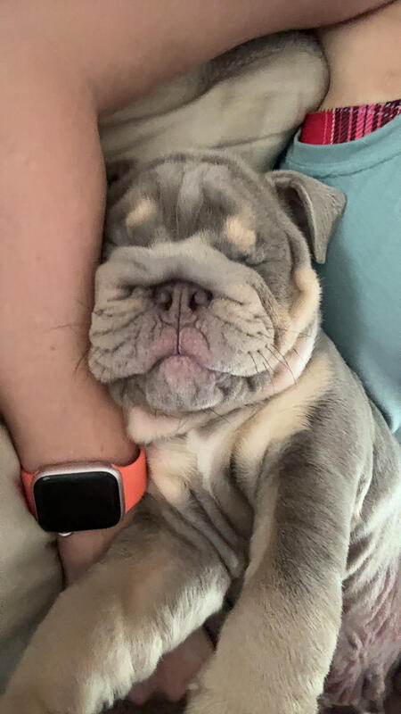 message kristenandrick about this ad We have a 16 week old, blue tri colored English Bulldog puppy that we need to rehome. He is up to date on all of his vaccinations and is great with kids and other dogs. The property manager of our home is not allowing us to keep a 2nd dog even though we had 2 previously so are being forced to rehome him. We would just like to find a loving home that is familiar with the breed. |