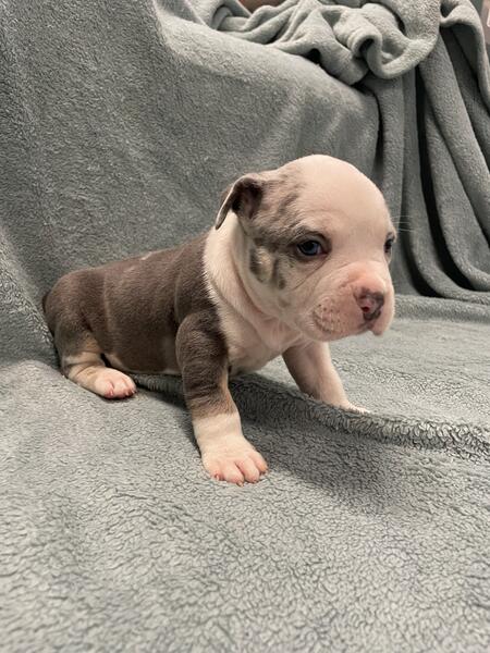 message berryhillbullies about this ad Hello! We have a beautiful litter of 9 American bully puppies. They are currently 3 weeks old, and will be available to go to their forever homes on August 16th. We are located in Holland, Michigan. We have 5 females, and 4 males available. They will come with full rights ABKC paperwork, first shots, dewormed and a health check from our vet. We are asking $2000 for the blue and white pups, and $2500 for the Merle pups. Mom is a standard blue tri with champion and grand champion in her pedigree. Dad is a brick house ghost tri blue Merle. Thanks for taking the time to look! If you have any questions feel free to reply to this listing. Id be happy to answer and questions, or send any more information. |