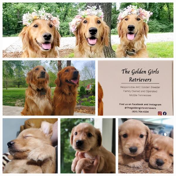 message thegoldengirls about this ad Welcome to The Golden Girls Retrievers All parents DNA/genetic tested before breeding AKC limited registration Wormed bi-weekly for prevention Microchiped All shots up to date Dew claws removed Born and raised in our home with children and other animals. Beginning potty training Located in Middle TN with goldens all over the US. Family owned and operated We are taking deposits with a contract for our upcoming litter! |