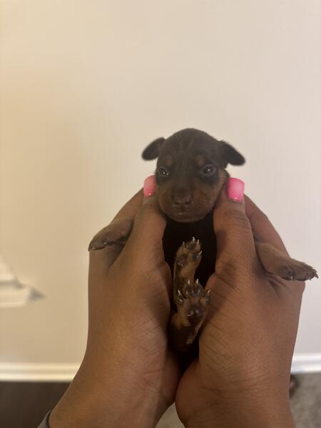 message playpinkennels about this ad Hello my name Reese (850)9800538 I am a Miniature Pincher (female) 3 weeks old Im currently utp on all my shots and deworming microchip, dew claw & tail docked. I am currently working on basic training, Puppy pad / Crate Training. Im just on this ad because I am looking for a loving family that I can love and care for that I can get old and watch the kids go off to college. Ill be there to cuddle for you fur ever just give me a call or text for more information or even a few selfies of me. Now taking deposit for $300 total pay off will be $900 Ill be ready to come home on the 11/22/25 eight five zero nine eight zero zero five three eight P.s. Ill be here waiting on you with my Puppy Eyes and my newborn Puppy breath. (8509800538) Jessica thanks |