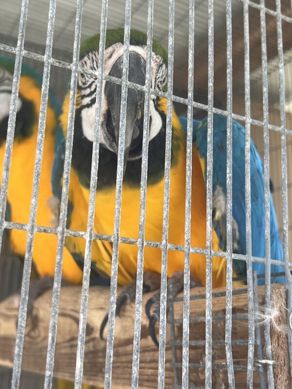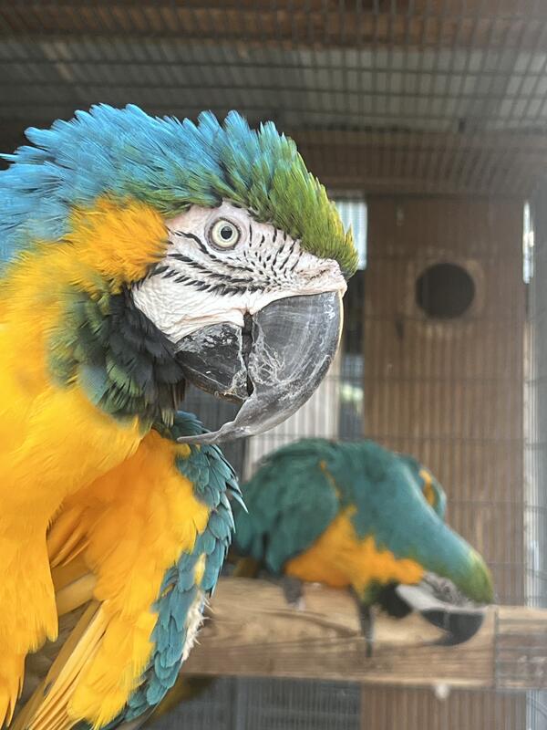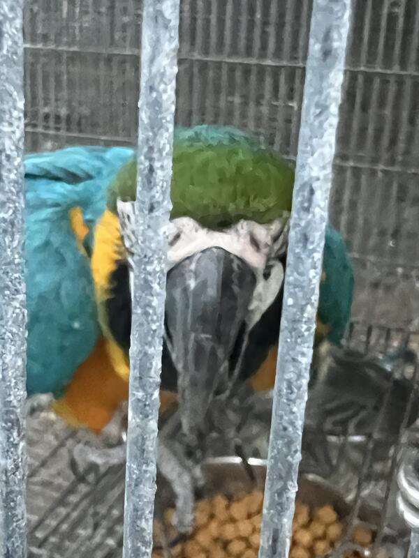 message hookbillfarm about this ad Blue and Gold macaw pair, prefect feather and healthy. Proven by previous owner but not for me, they are not tamed, they are breeders. Male has two top toe missing and female slightly bent the top beak but she can eat properly, you can see in the pictures. Previous owner said 17 and 14 years old but they are not leg banded. I do ship by Delta Cargo. |