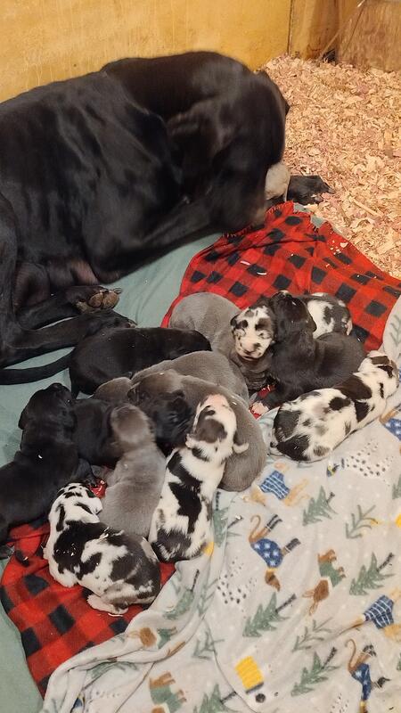 message rachel1 about this ad AKC registered Great Dane puppies will be available to go to their new homes end of January 2026. Puppies will be wormed at 2,4,6,8,10,12 weeks old. They will be vaccinated for DHPP at 6,9,12 weeks old(if still with us at 12 weeks Puppies will get bathes, nail trims, ear cleanings, at appropriate ages. They will be started on potty training and light crate training. Current available puppies prices: 3 black males 1,000 4 blue females - $1500 1 light marked harlequin male - $1600 1 harlequin female - $1800 Located in Galien, MI. 269-985-3822 OUR DANE PAGE IS: Lucky Kennels Great Danes |