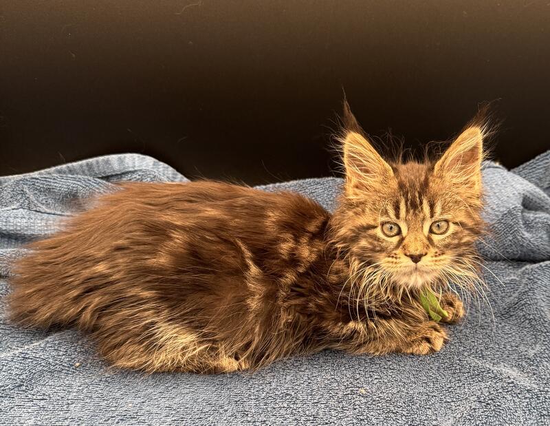 message augustmc about this ad We have kittens available. 5 males and 4 females. Both parents champions. Black smoke, silver and brown tabby. We are located outside of Kansas City, and we offer several options for pickup. We can deliver to you at the airport, meet at an agreed location, or you are welcome to pick up your kitten directly from our home. A deposit of $500 is required to reserve a kitten, with the remaining balance due at the time of pickup. Comprehensive Health Guarantee Microchip Implant with Free Lifetime Registration Age-Appropriate Vaccines Topical Parasite Treatment TICA Registration CFA Registration 30 Days of Trupanion Health Insurance Adoption Swag Bag Lifetime Support augustmainecoons . com |