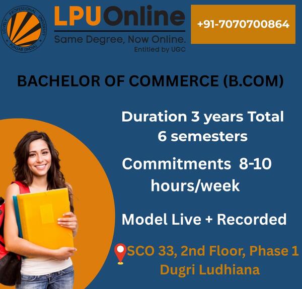 message sharmaradhika about this ad Join LPUs UGC-approved B.Com online course. Gain business skills, study flexibly, and boost your career with an affordable, industry-focused degree |