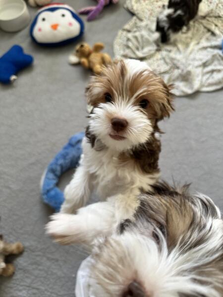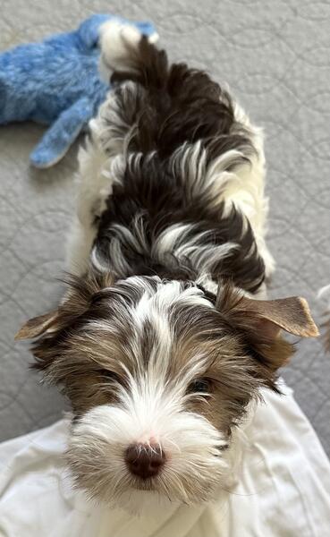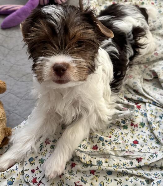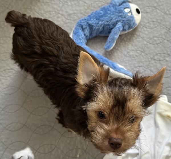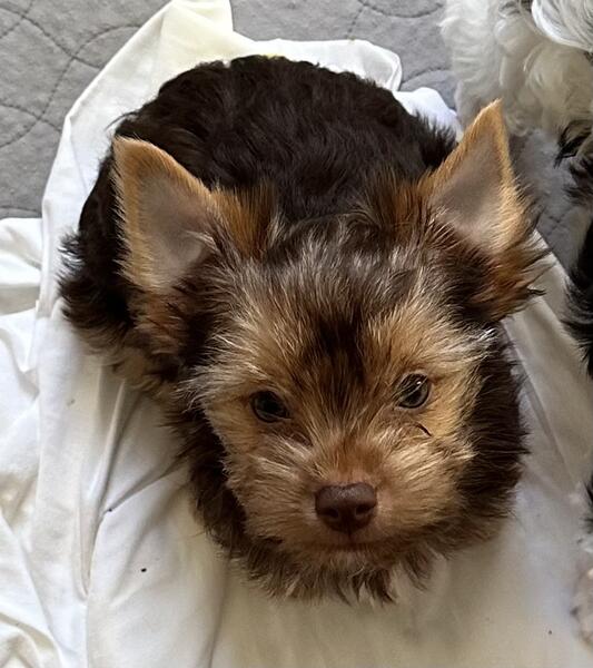12 werks old. Chocolate and chocolate parti yorkies. Akc reg. Ready to go home!