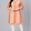 message rohinee about this ad Product Code: 8429191 Orange and white printed straight kurta, has a mandarin collar, three-quarter sleeves, straight hem, side slits, button closure The model (height 5'8 is wearing a size S You'll love the style, comfort and durability of this W kurta. Dress up for your next family event by pairing this orange piece with your best Kolhapuris and simple jewellery. Cotton Hand-wash httpsmyntr.it/HcSXlCn |