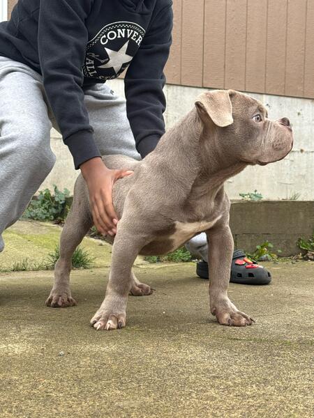 message nwkbullycamp about this ad 7 Mo old American Bully. pocket/micro class. He has tons of energy. Family raised and oriented with other dogs. Loves to play wit balls and tug ropes. UTD on vaccines and dewormed. |