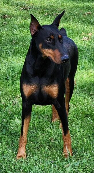 message brensdobielife about this ad AKC Registered Doberman Pincher Puppies Litter has 1 female left Black & Tan Ms Purple AKA Gaia Momma on site Daddy if requested will be available for show Puppies were born on the February 27 2024 Tails and duclaws were done when they were 2 days old All 3 sets of shots & Lepto & 1 year rabies shot were given Ears are cropped and are going thru the posting stage Daddys & Mamas photos included in ad |