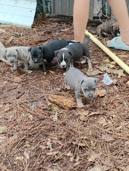 message wb803 about this ad Standard American bully tri puppies 1 female 6 males dad is tri mom is American bully/brindle no papers asking 250 for males I only sale female if someone money is right dad died 2 days ago so I gotta keep one 8034667159 |