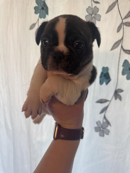 message jess1105 about this ad We have one male frenchton pup left. Hes brindle and white. Very sweet laid back pup. Located in Rockport, IN. Ready March 15th. |