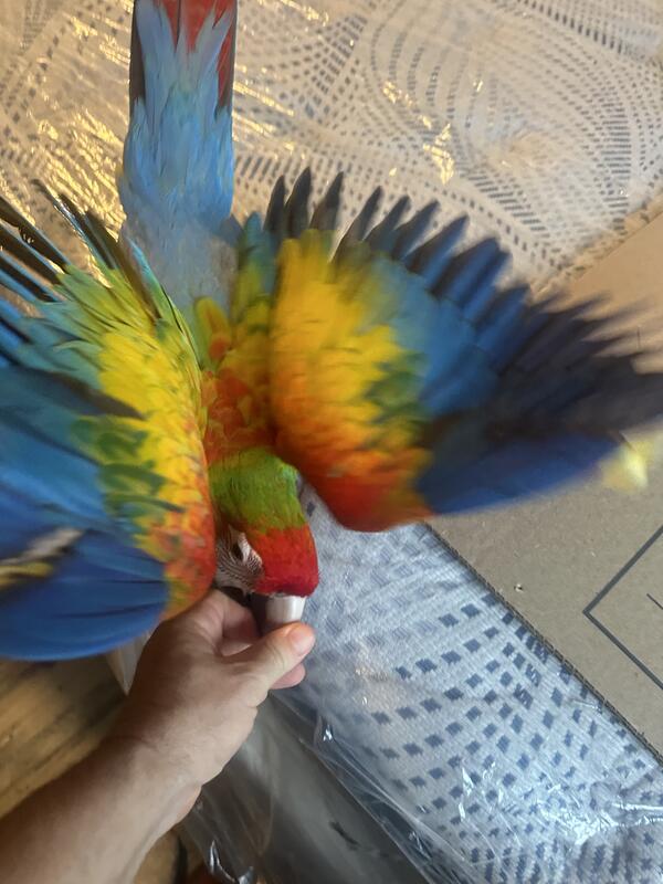 Baby sun bird macaw two months old special baby for more information. Feel free to call 786-955-4974.