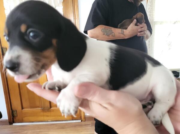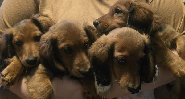 message mssteckman about this ad 9 mini dachshund pups 2 female 7 males both long and short hair adorable spunky and cuddly 3 shaded red long hair males ready for new homes now. 2 piebald Male one long hair 1 short ready in 2 weeks. 2 shaded cream female short hair ready in 2 weeks 2 black and tan males 1 long hair 1 short ready to go in 2 weeks registered parents, breeder, and litter! Parents on site. Vetted wormed and shots. |