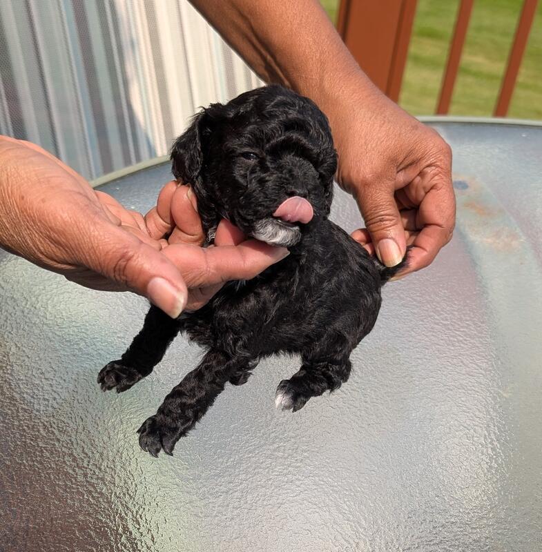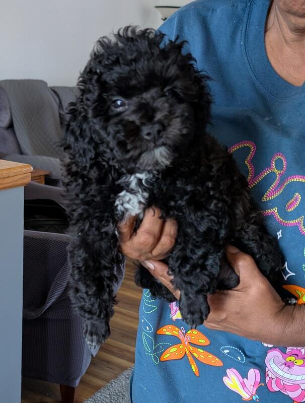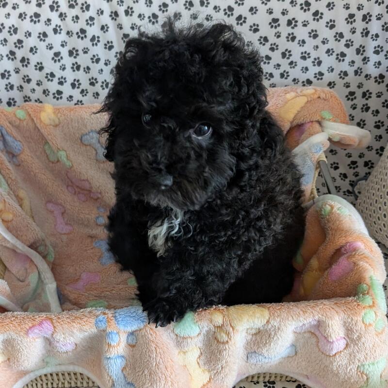 message jnhtmlc3540 about this ad This is Teddy, he is black with white on his chin and chest At 13 wks old he weighs 5.3 lbs His dew claws and tails have been done. His mom and dad both are AKC and CKC have been embark tested. They are 100% toy poodle and they passed the poodle panel. Mom is black weighs 8 lb, dad is a black and white party weighing 4 lb. Bill comes with shot record, health certification. Bill is being sold as pet only. Bill can be held with a $500 non-refundable deposit, for more information contact me. |