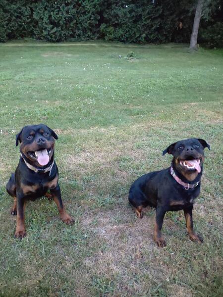 message rottiemom1 about this ad Last female left from a litter of 9. She knows sit,lay down, and recall. We're working on her stay. She is also housebroken and crate trained. She loves being outside and water. She does play catch. Loves to cuddle and she has been around chickens, outside cat and her mom dad and grandparents. If your interested in her please send a message and we can figure out a day and time to see her. She already has a nice blocky head and she comes with akc full rights. So when she's old enough she can be breed. She comes from champion blood line. I will post new pictures tomorrow of her. The picture with the 4 dogs are grandparents and parent and the picture of the 2 dogs are her parents. She looks bigger than she looks in the pictures |