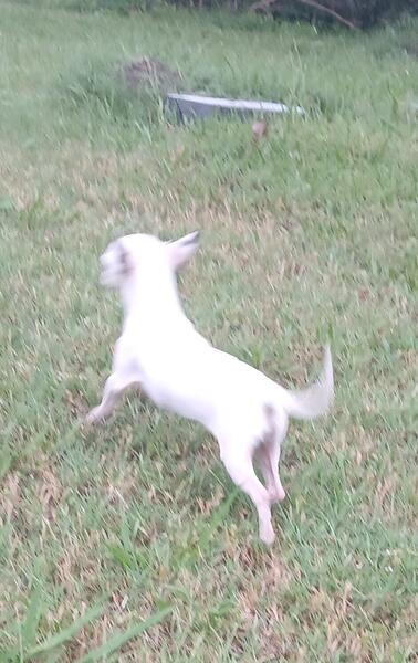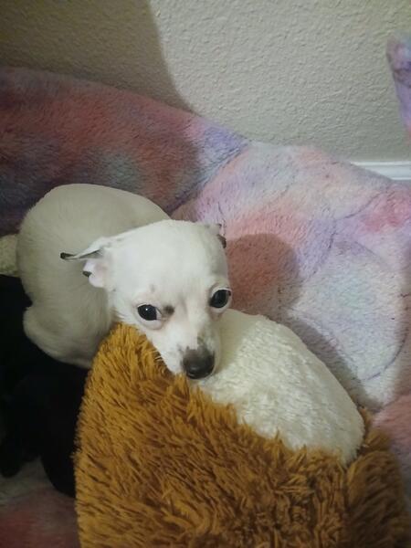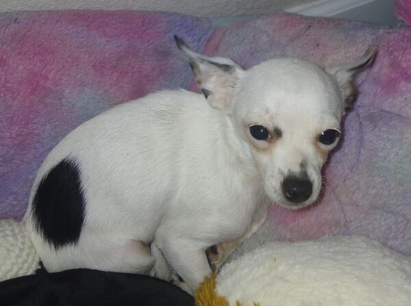 message angelsfh about this ad Our tiny, sweet, cuddly white female Chihuahua puppy has a black dot on her right side body and a little black on both ears. Her cute little nose is black also. She was charting between 5 and 5 1/2 pounds give or take 1/2 pound. She is a tiny 3 pounds and 10.3 ounces at 10 months. Her dew claws have been removed. Her birthday is Tuesday, 10-29. She's the perfect little companion. If you fall in love with her, just let me know. She will always have a home here at any time. Well love to stay in contact and receive updates and pics. Can meet locally. Will deliver or meet for a fee. I hope you find the perfect best friend in your search.Reduced to $1500 |