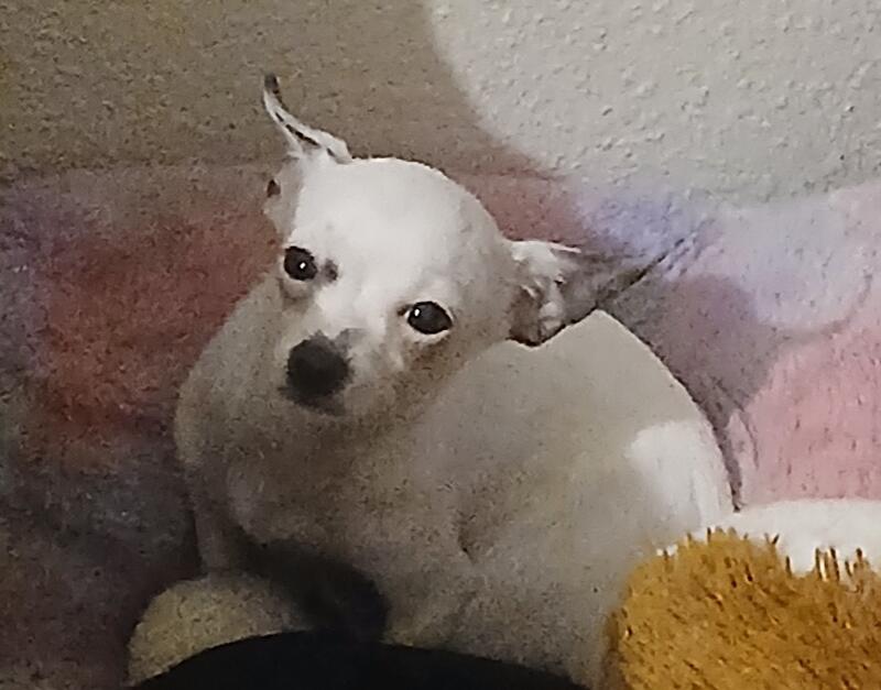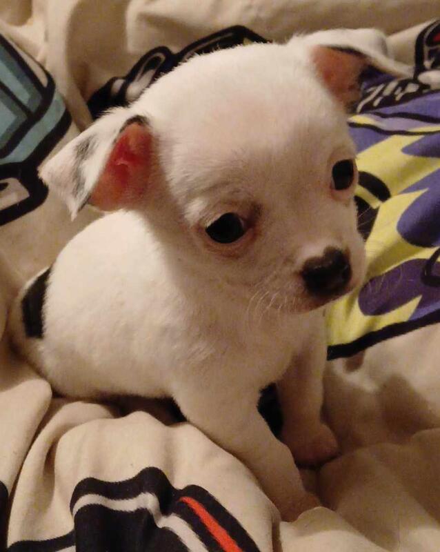 message angelsfh about this ad Our tiny, sweet, cuddly white female Chihuahua puppy has a black dot on her right side body and a little black on both ears. Her cute little nose is black also. She was charting between 5 and 5 1/2 pounds give or take 1/2 pound. She is a tiny 3 pounds and 10.3 ounces at 10 months. Her dew claws have been removed. Her birthday is Tuesday, 10-29. She's the perfect little companion. If you fall in love with her, just let me know. She will always have a home here at any time. Well love to stay in contact and receive updates and pics. Can meet locally. Will deliver or meet for a fee. I hope you find the perfect best friend in your search.Reduced to $1300 |