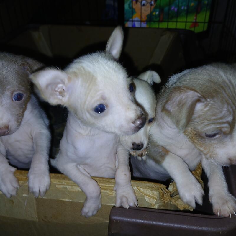 message gordislilpups about this ad 5 wks old $200. deposit will hold your pick until 8 wks. Will be vet checked and vaccinated. 2 hairy hairless girls 1 white ,1 blue ,1 blue hairy hairless male. 1 white powder puff male Pics of mom.Sweet personality. Email for more details, pics, or questions. |