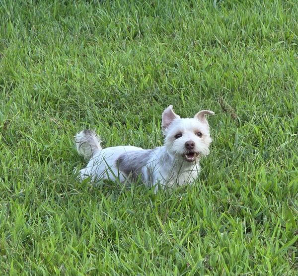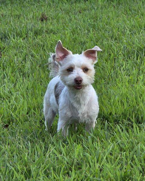 Willie is a sweet playful chocolate parti male yorkie born 10-2-2024