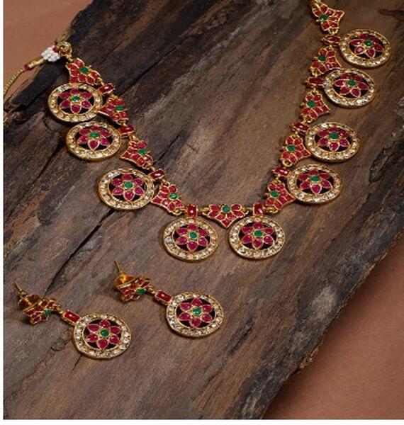 message rohinee about this ad Product Code: 10296715 Gold-Plated Jewellery Set Gold-toned, green & red necklace studded with artificial beads & stones, secured with a drawstring closure A pair of matching earrings, secured with post and back Necklace Length : 41 cm Earring Length : 5 cm Accentuate Your Feminine Grace By Putting On This Necklace Set From Zaveri Pearls And Let Your Look Be Exceptionally Beautiful. Club This Necklace Set With Traditional Attire To Look Gorgeous In No Time. An Exclusive Assortment Of Fashion Jewellery And Accessories Brought To You By Zaveri Pearls, Select Your Kind Of Jewellery And Get Decked Up For Upcoming Festival Or Party. httpsmyntr.it/hvE30al |
