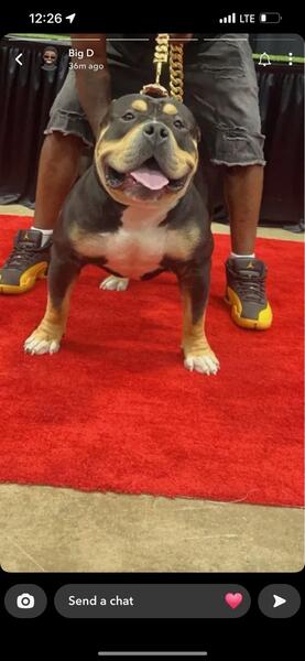 message jordanp20 about this ad Grinch blood on the tan points French weight 18lbs Chocolate frenchie Merle carrying cream and coco weight 28lbs Black and tan points American Bully weight 110 great temper amazing around other animals huge bone 6 Point Merle American Bully weight 106 huge head great conformation Both American Bullies come from Gr Ch Kaos blood Lucky Luciano and Ch Glocko Lets work |