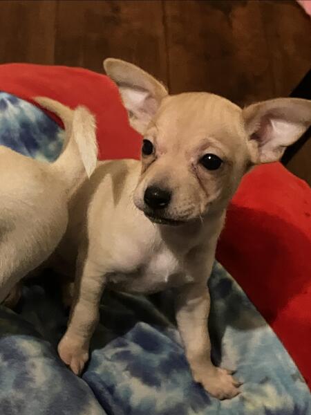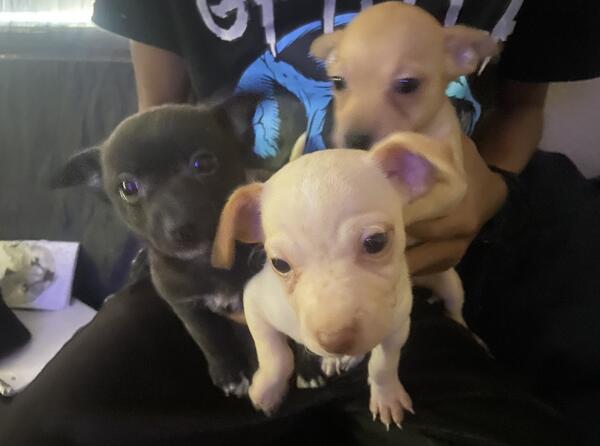 message cass423 about this ad Pomeranian/Chihuahua Mix. Mom is tan purebred Pomeranian dad is purebred Chihuahua. They are 12 weeks now. 2 boys one girl. The Girl is the tan one. The boys are the black one and white one |