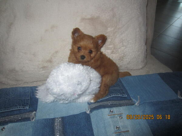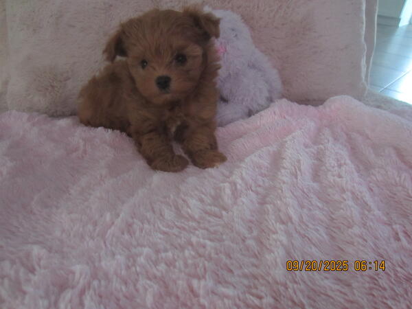 message cstctsy93 about this ad The 2 maltipoo/Pom puppies are red in color. The male is on the jean blanket and the female is on the light pink blanket. The male is $1200 and the female is $1600. They were born on August 5 2025 and are now available They will come with a FL Health cert. from a licensed Vet. They have had their second puppy shot. Please call 954-873-8477 for more info on the beautiful puppies. They will be small. Mom is 5 lbs and Dad is 4 lbs. They live in a clean loving home.Please call, thank you. Current pics are available. call me because people steal my pics. |
